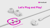 This 2-meter extension cord connects easily to other Moduel components, such as power strips or additional extension cords, giving you the freedom to place power sources exactly where you need them. You can connect up to 10 power outlets to a single wall socket and extend your setup up to 10 meters in total length using Moduel extension cords.